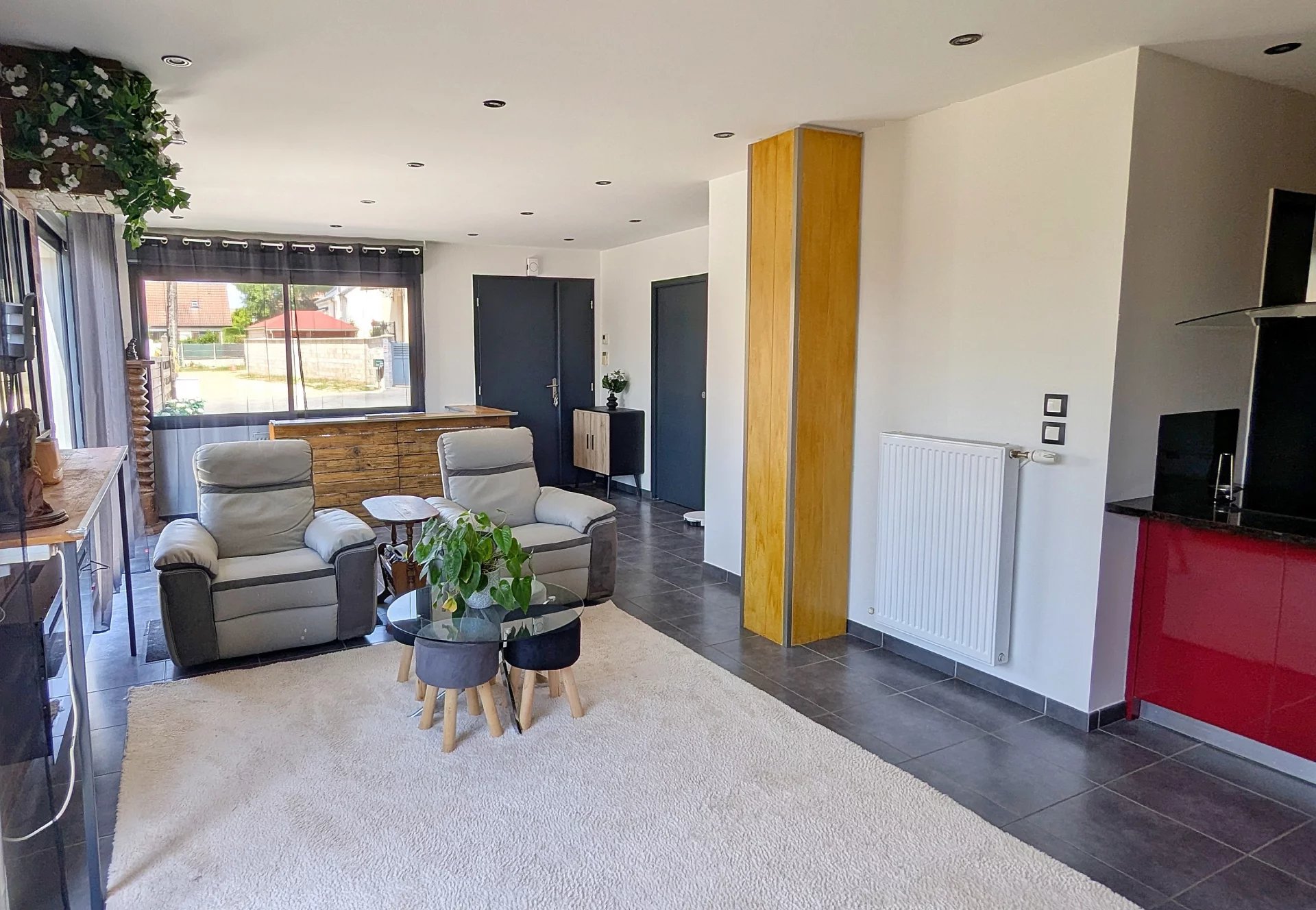 L'agence vous présente cette maison encore sous garantie décennale et en excellent état.D'une superficie de 94 m², vous entrez dans un séjour d'environ 35 m² lumineux de part son exposition (Sud Ouest) avec son espace bar, sa cuisine ouverte et sur mesure équipée et aménagée avec plan de travail en granit , un grand cellier pour vos rangements, un dégagement afin d'y déposer les chaussures et vestes ainsi qu'un WC.Au premier étage un couloir dessert 3 chambres ainsi qu'une salle de bains avec douche ( baignoire + douche), et une double vasques, WC indépendant.Pour vos véhicules un garage de 30 m² est accolé à la maison, vous aurez de plus, la possibilité d'aménager les 30 m² au dessus (pour une 4ème chambre, une suite parentale, un atelier, un bureau ...)Devant la maison vous disposez de 3 places de stationnement.Le tout sur une parcelle de 325 m², comprenant 2 puisards, une douche extérieure solaire, une belle terrasse d'environ 15m².Située dans une impasse très agréable où règne la bonne entente entre voisins !Proche gare, commerces et nationale.